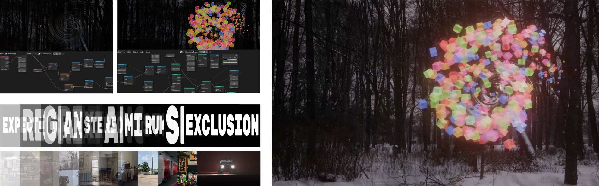 In the prologue, one of the protagonists dies in a car crash. I decided to pick up 3D animation again and rendered a somewhat awkwardly animated car crashing into the virtual camera and fading to white. This led me to wrestle with Blender’s volumetric fog rendering for quite a bit, but was overall easy thanks to an awesome, almost ready-to-use model of the Land Rover Defender 110.
